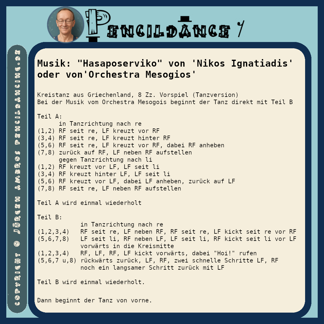 Choreographie: Hasaposerviko Veröffentlicht am April 25, 2025April 25, 2025 von Ambros Jürgen Choreographie: Hasaposerviko * Veröffentlicht in Pencildancing.